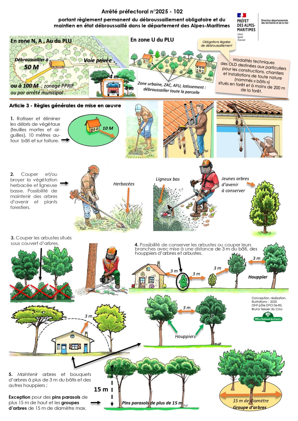 * Sur les zones à 100M de débroussaillement, pas d’espacement au-delà des 50 premiers mètres