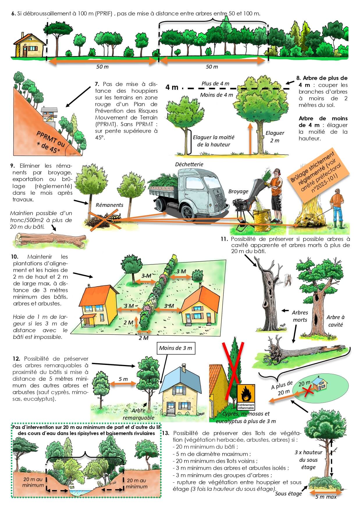 - Pas de débroussaillement à moins de 20m de part et d’autre des cours d’eau permanent et intermittent