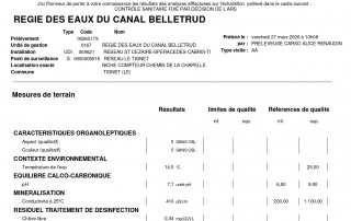 Contrôle sanitaire des EAUX DESTINEES A LA CONSOMMATION HUMAINE – CANAL BELLETRUD – 01/04/2026